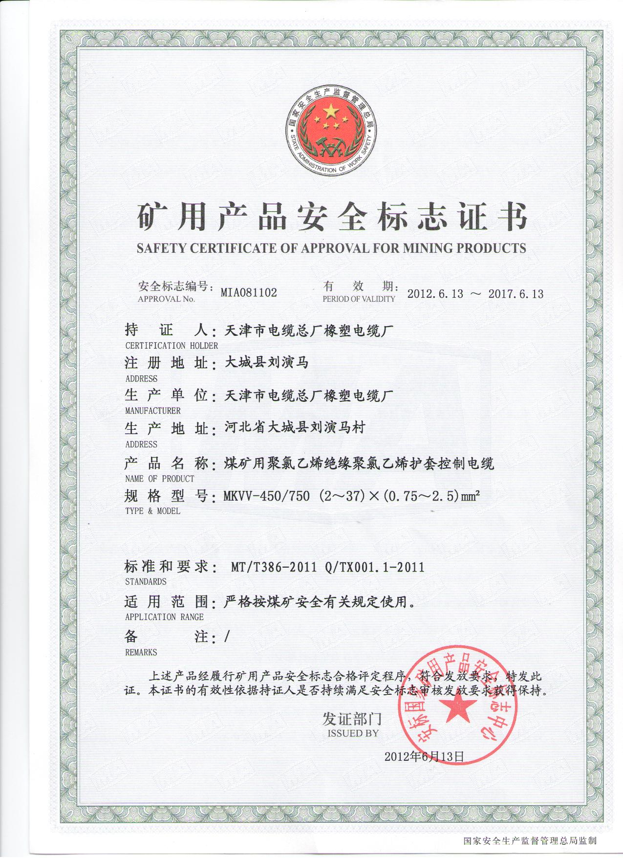 MT386-1995《煤矿用阻燃电缆阻燃性的试验方法和判定规则》及Q/TX 001-2006 《煤矿用塑料绝缘控制电缆》